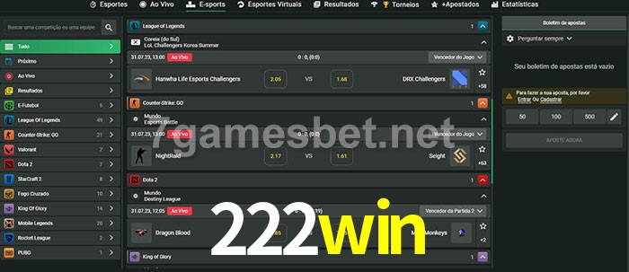 A aposta 222win oferece aos jogadores a experiência mais conveniente de apostas em eSports!